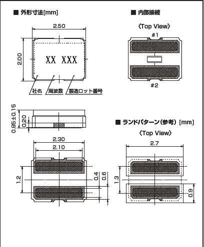 頻率公差 ±30×10-6,±50×10-6,±100×10-6(at25℃)