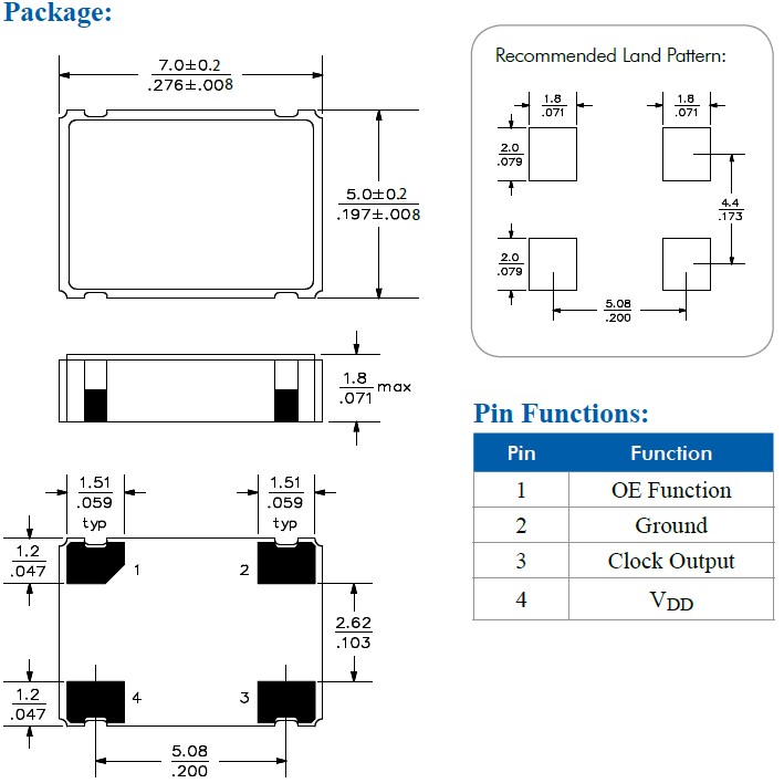 MN5070mm振蕩器,亞陶貼片晶振,進口臺灣百利通晶振,小型SMD有源晶振,從最初超大體積到現在的7050mm體積乃至更小的體積,有著翻天覆地的改變,體積的變小也使產品帶來了更高的穩定性能,接縫密封石英晶體振蕩器,精度高,覆蓋頻率范圍寬的特點,SMD高速自動安裝和高溫回流焊設計,Optionable待機輸出三態輸出功能,電源電壓范圍:1.8V?5 V,高穩定性,低抖動,低功耗,主要應用領域:無線通訊,高端智能手機,平板筆記本WLAN,藍牙,數碼相機,DSL和其他IT產品的晶振應用,三態功能,PC和LCDM等高端數碼領域,符合RoHS/無鉛.