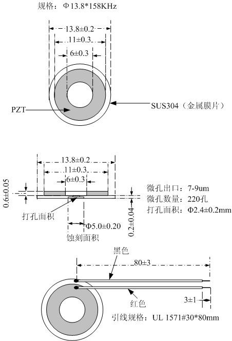 fr = 158kHz±5kHz               5.霧化片最大輸入峰值:Vp-p:   Max: 65V