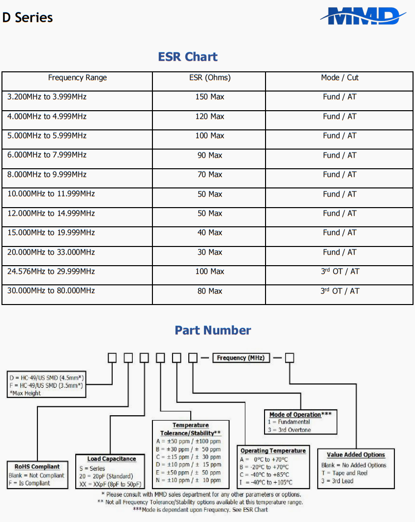 | DF20AA1-4.9152MHZ-T | MMD | D | 0°C ~ 70°C | 4.9152 MHz | ±100ppm | ±50ppm | 20 pF |