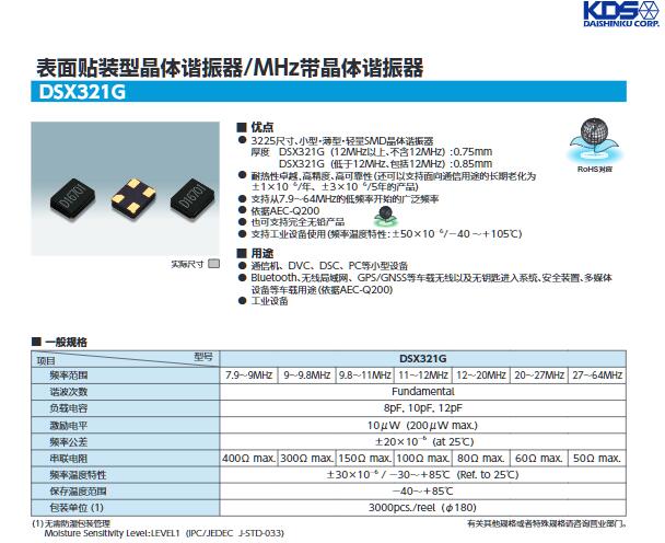 | KDS晶振 | 1C208000CE0H | DSX321G | 3225 | 8.000MHZ |