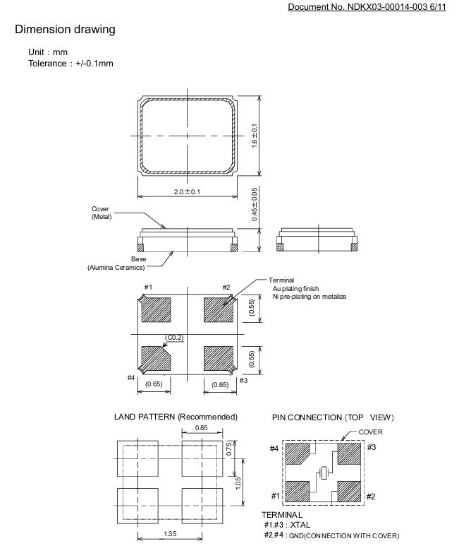 | 晶振規格參數 | NX2016SA-40MHZ-STD-CZS-3貼片晶振 |