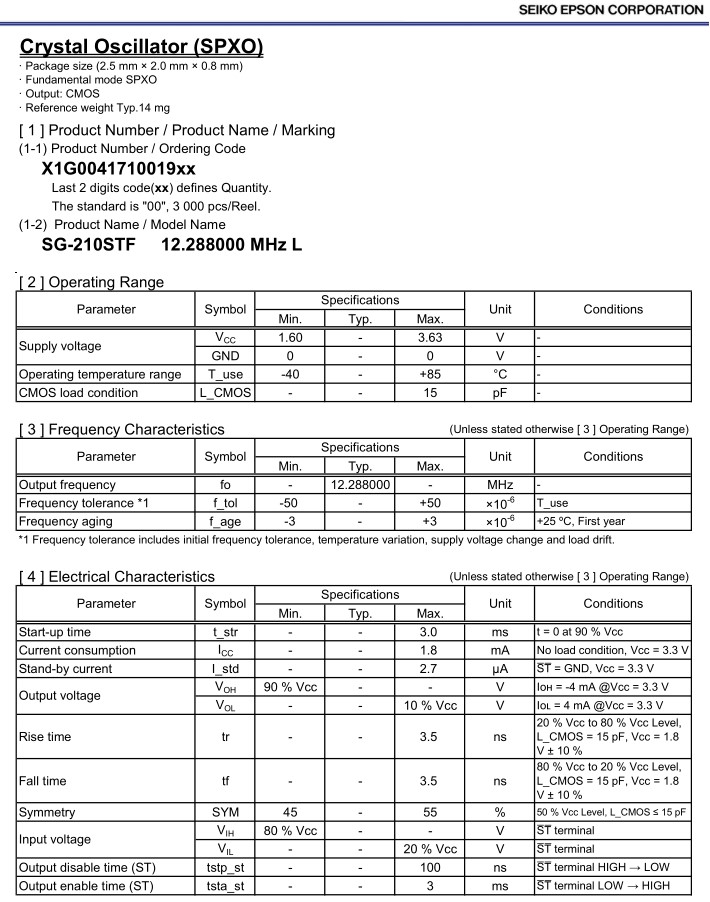 | X1G0041710242 | SG-210STF | 32.768000 MHz | 2.50 x 2.00 x 0.90 mm | CMOS | -40 to 105 °C | +/-50 ppm |