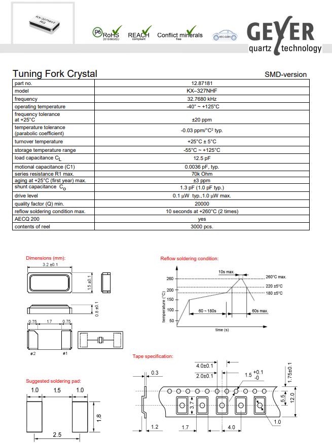 更多>>12.87181 KX-327NHF 3215 32.768K 12.5PF GEYER車規晶振