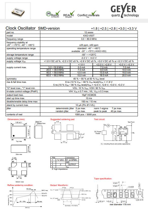 產(chǎn)品信息: GEYER 電子 KXO-V93T 32.768 kHz 振蕩器