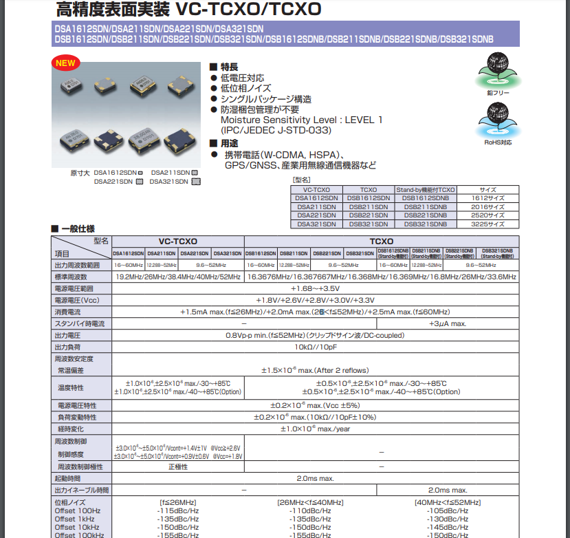 更多>>KDS晶振系列DSB321SDN26M-1XTW26000MAA溫補晶振
