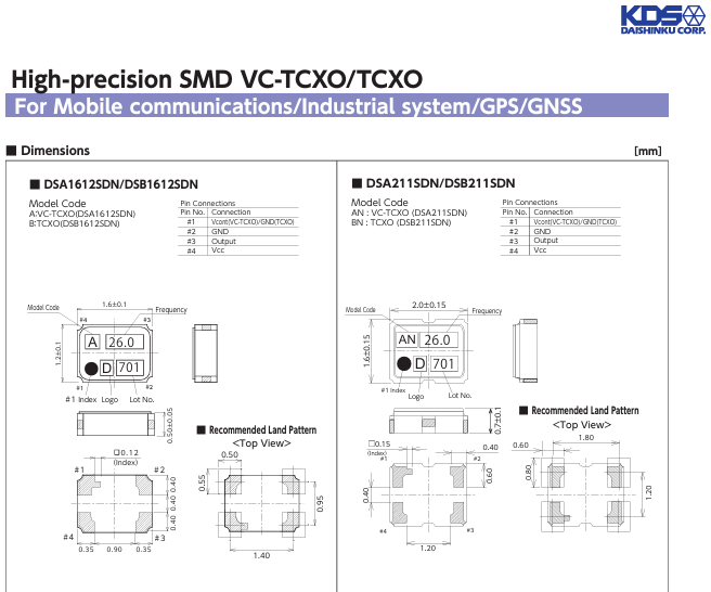 日本KDS晶振,大真空溫補晶振,定位GPS晶振石英晶振