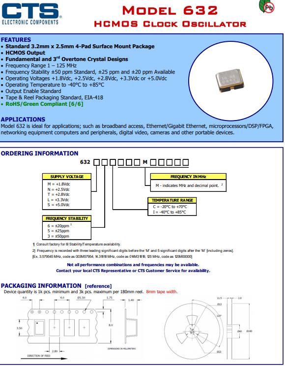 | 632L3I018M43200 | CTS-Frequency Controls | 632 | 18.432MHz | ±50ppm | 0.126" L x 0.098" W (3.20mm x 2.50mm) |