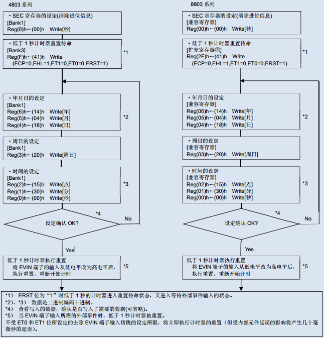 下文詳細(xì)說(shuō)明使用上述兩種對(duì)時(shí)方法相關(guān)的寄存器,重置的動(dòng)作及設(shè)定例.使用上述方法之前,務(wù)必先從外部輸入已同步的時(shí)間信息.