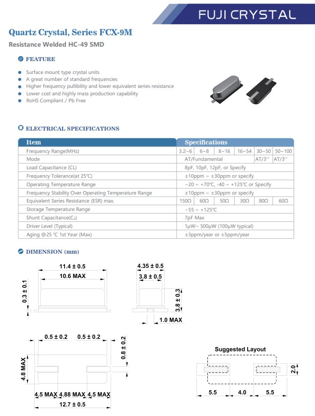 | Remoteble | RT400 | 3225 SMD-4 | FCX-3M | 12 MHz |