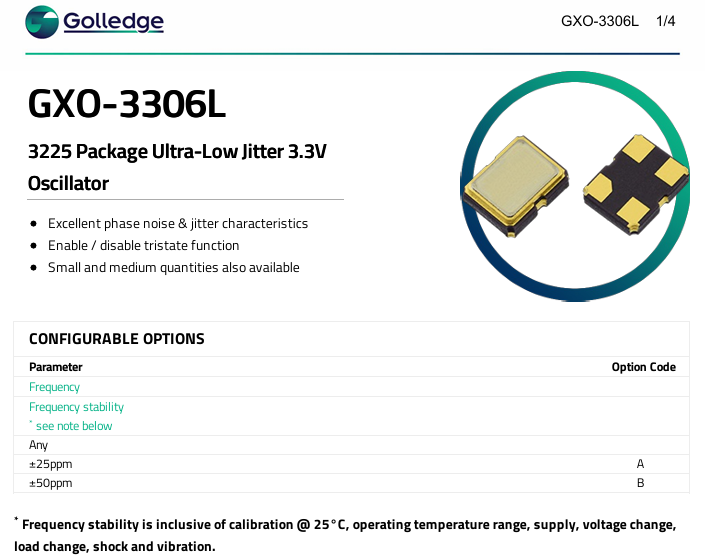 長期以來,Golledge Electronics一直是值得信賴的品牌,為從電信到航空航天的行業提供高質量的計時解決方案.GXO-3306系列因其卓越的相位噪聲性能.