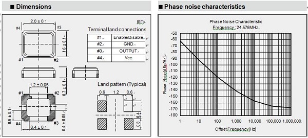 該溫補晶振噪聲特性和尺寸圖如下: