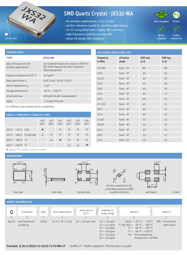 通過使用Jauch的這種WA晶體,開發(fā)人員可以提前避免其應(yīng)用中因嚴(yán)重長(zhǎng)期老化而引起的問題.因此,這些器件非常適合(連同許多其他優(yōu)化)用于需要較小容差預(yù)算的無線和網(wǎng)絡(luò)應(yīng)用.無線Wi-Fi晶振,石英晶體KDS晶振