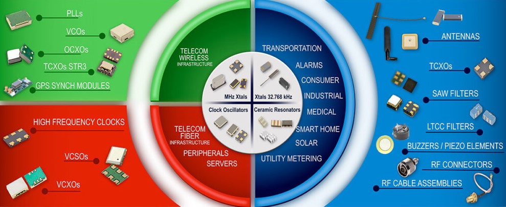 諧振器,時鐘振蕩器和濾波器以及天線則在亞洲的幾家石英晶振工廠生產.該公司正在從其位于香港的物流中心向全球運送產品.