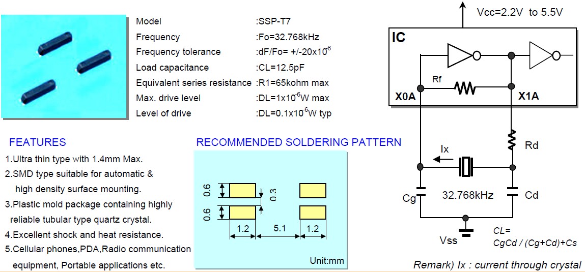 IC Maker  IC name  Quartz crystal  CL(pF)  Cg(pF)  Cd(pF)  Rd(kΩ)