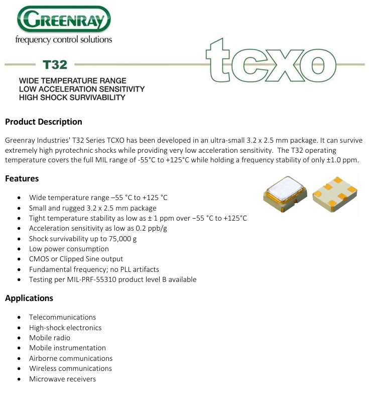 美國Greenray格林雷用于軍事和國防工業的高性能石英晶體振蕩器