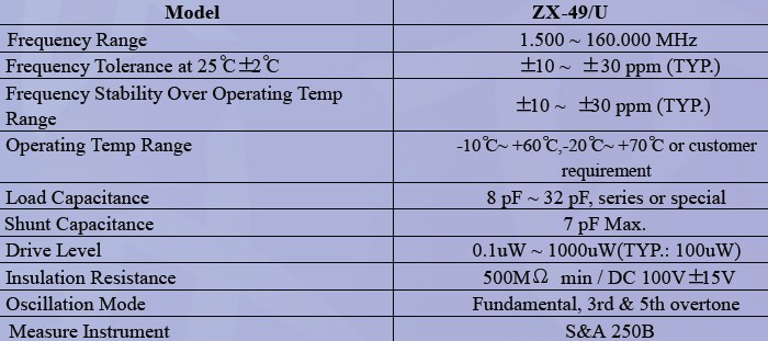 石英晶振,石英晶體諧振器,ZX-49U晶體