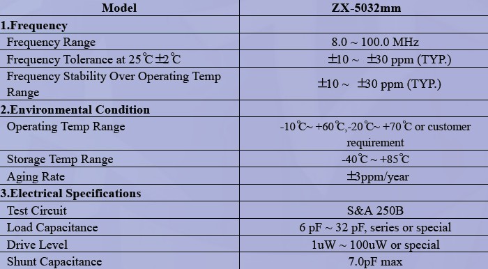 石英晶振,貼片晶振ZX-5032,石英晶體諧振器
