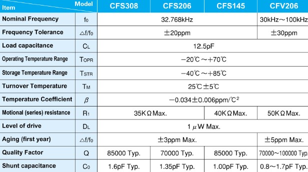 小型、質地輕的表面貼片音叉型晶體諧振器,具備優良的耐熱性,耐環境特性,在辦公自動化,家電領域,移動通信領域可發揮優良的電氣特性,符合無鉛標準.