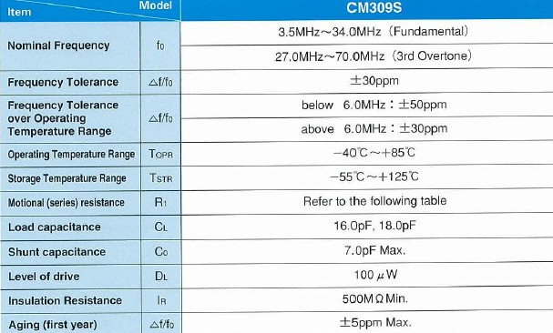 晶振規格: