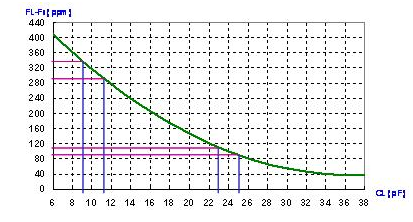 CL=24 pF 時的頻率敏感度是10 ppm/pF, 及CL=10 pF時的頻率敏感度是20 ppm/pF. 在并聯線路中, 負載電容越小, 頻率對負載電容變化的敏感度越高. 相反的, 負載電容越大, 頻率對負載電容變化的敏感度越低. 這就是石英晶體共振子用于VCXO線路上時, 線路設計上會選用較小負載電容. 反之, 在要求較準確的頻率信號時, 線路設計上會選用較高的負載電容.